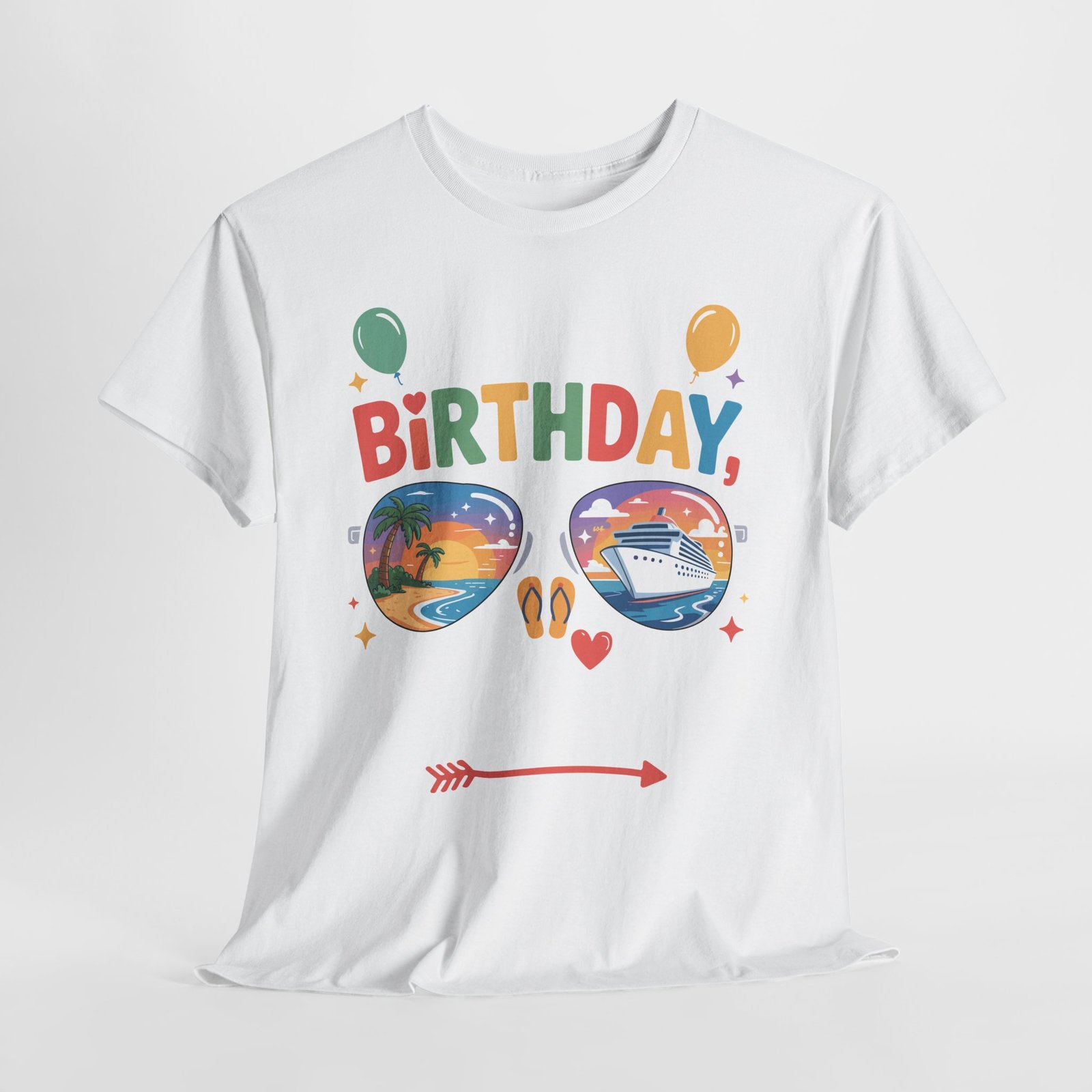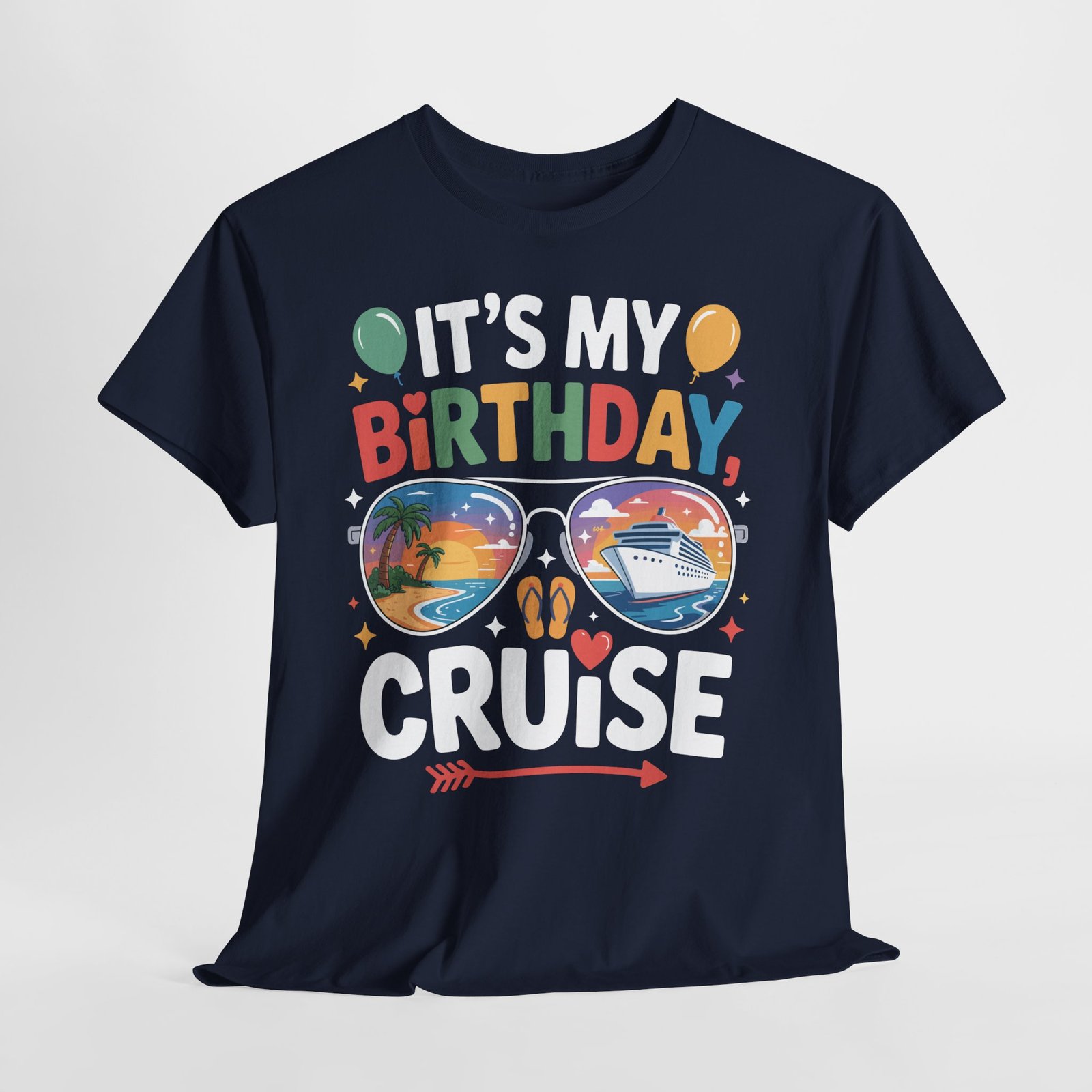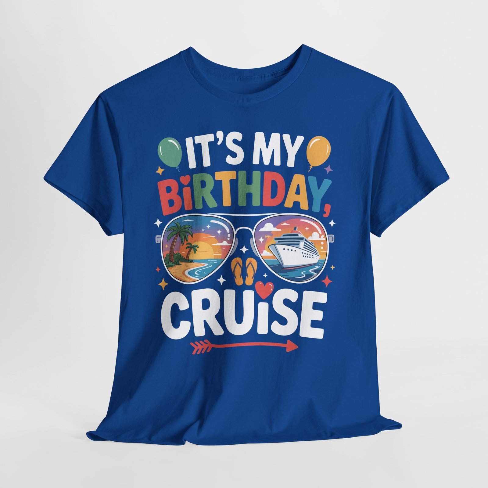 When it’s your birthday on a ship, you deserve to be the center of attention. Wearing this specialized Birthday Cruise T-shirt is like carrying a VIP invitation for fun wherever you go on the ship. The vibrant, multi-colored letters of “BIRTHDAY” combined with playful elements like balloons, stars, and hearts make it clear that you are here to celebrate. Fellow passengers and crew members love to acknowledge milestones, and this shirt is your ticket to extra smiles and birthday cheers at every turn.