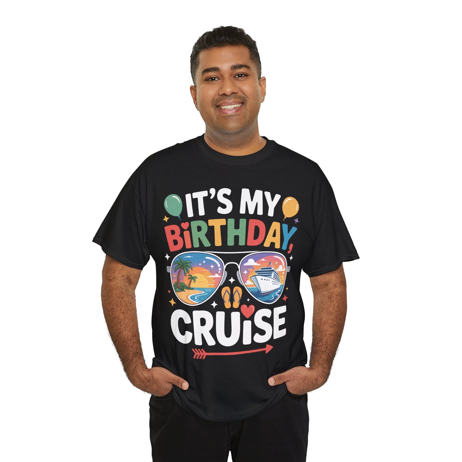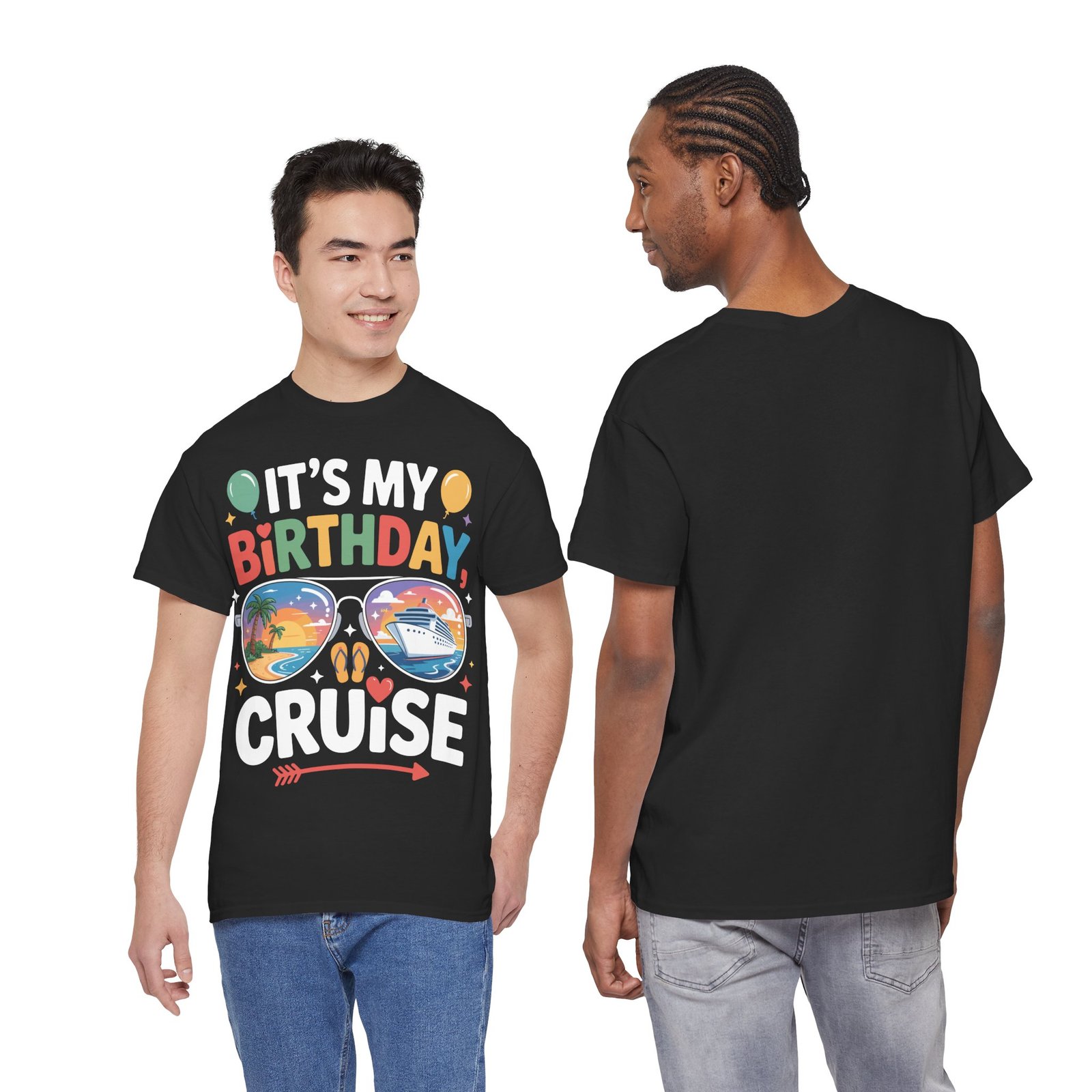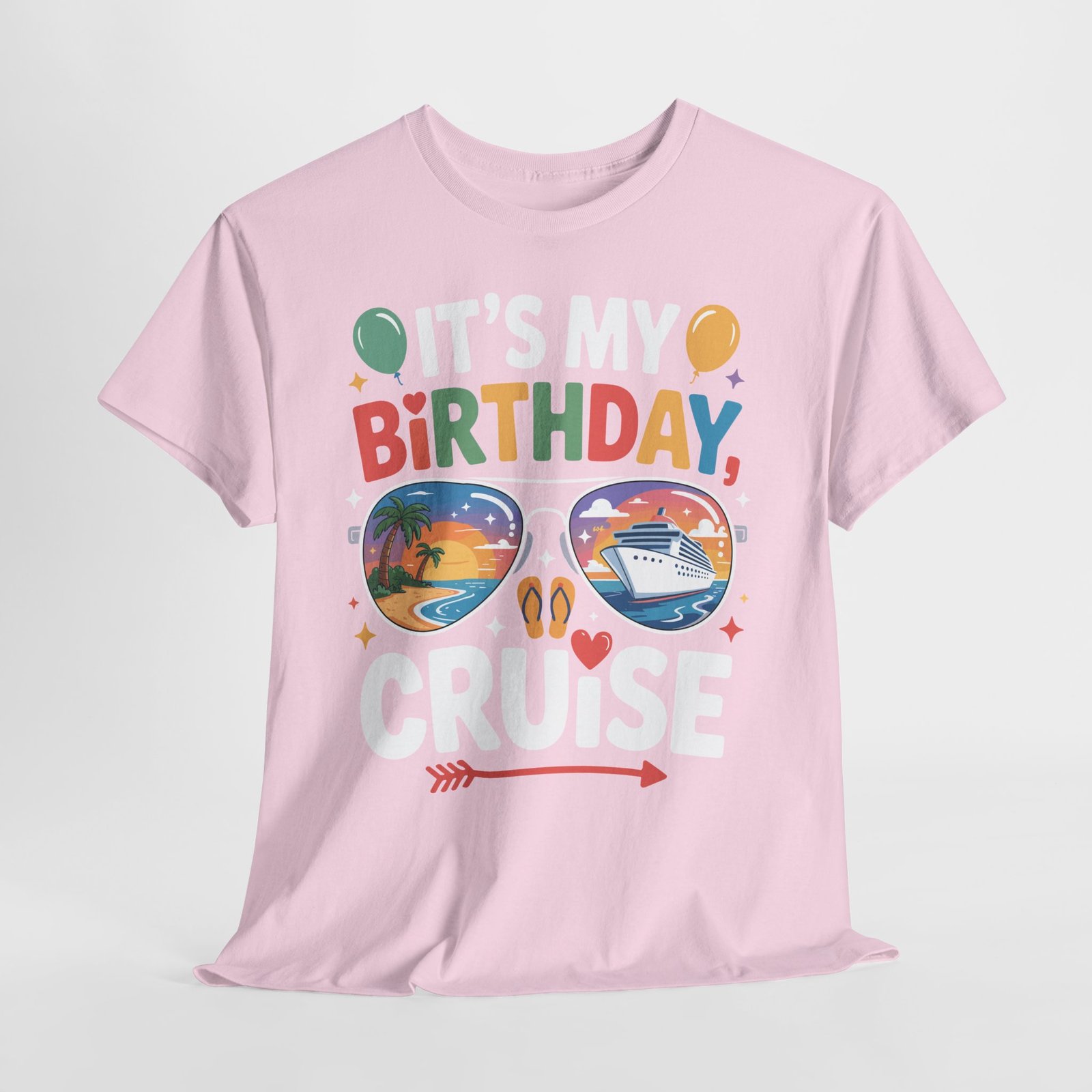 When it’s your birthday on a ship, you deserve to be the center of attention. Wearing this specialized Birthday Cruise T-shirt is like carrying a VIP invitation for fun wherever you go on the ship. The vibrant, multi-colored letters of “BIRTHDAY” combined with playful elements like balloons, stars, and hearts make it clear that you are here to celebrate. Fellow passengers and crew members love to acknowledge milestones, and this shirt is your ticket to extra smiles and birthday cheers at every turn.
