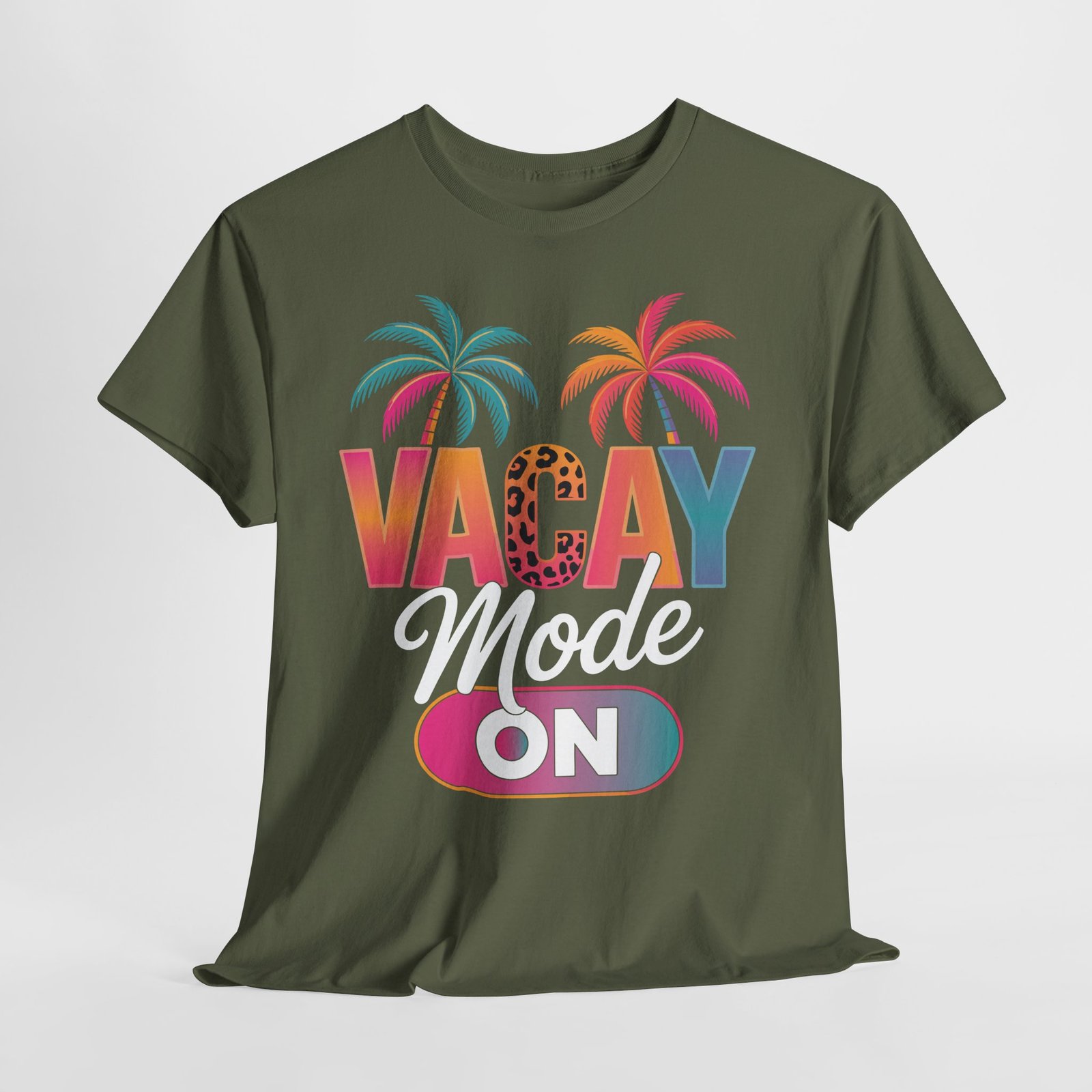 Overall, this vacay mode on shirt is a stylish, comfortable, and versatile choice for anyone who loves summer, tropical destinations, and cruise vacations. With its bright gradients, bold lettering, and playful tropical theme, it’s perfect for warm-weather travel and everyday summer wear. Whether you’re heading to a beach resort, boarding a cruise ship, or planning a tropical escape, this design adds excitement and personality to any vacation outfit.