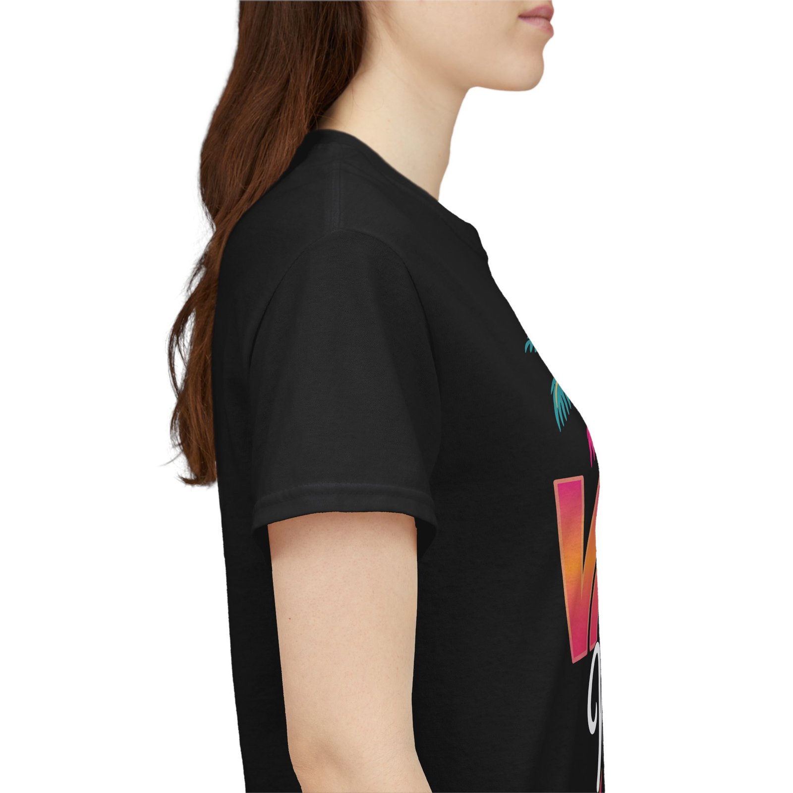 The high-quality DTG print ensures the gradients, palm trees, and leopard elements remain vivid through repeated washes. Printed on soft unisex cotton, this shirt offers long-lasting comfort during summer activities, beach walks, tropical sightseeing, or enjoying entertainment aboard a cruise ship. The design pairs easily with shorts, swimwear, sandals, or casual vacation outfits, making it a flexible essential in any tropical wardrobe.