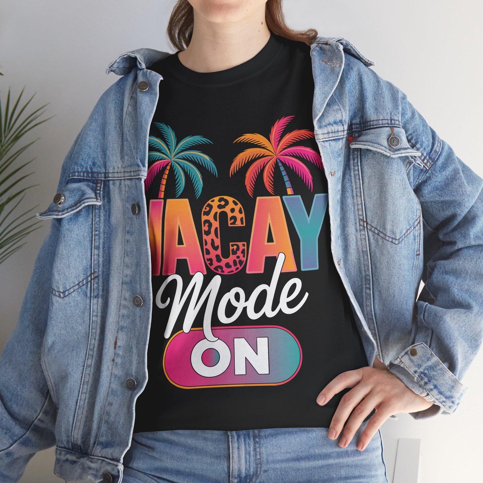 This vacay mode on shirt is also a strong choice for customers searching for summer graphic tees, beach shirts, tropical vacation clothing, cruise fashion, and fun travel apparel. It works especially well for Caribbean cruises, Bahamas trips, Hawaii vacations, and other sunny destinations where bright and cheerful outfits enhance the overall holiday vibe. Whether you’re relaxing under palm trees, exploring tropical islands, or simply enjoying a warm summer day, this design communicates the excitement of switching into full vacation mode.